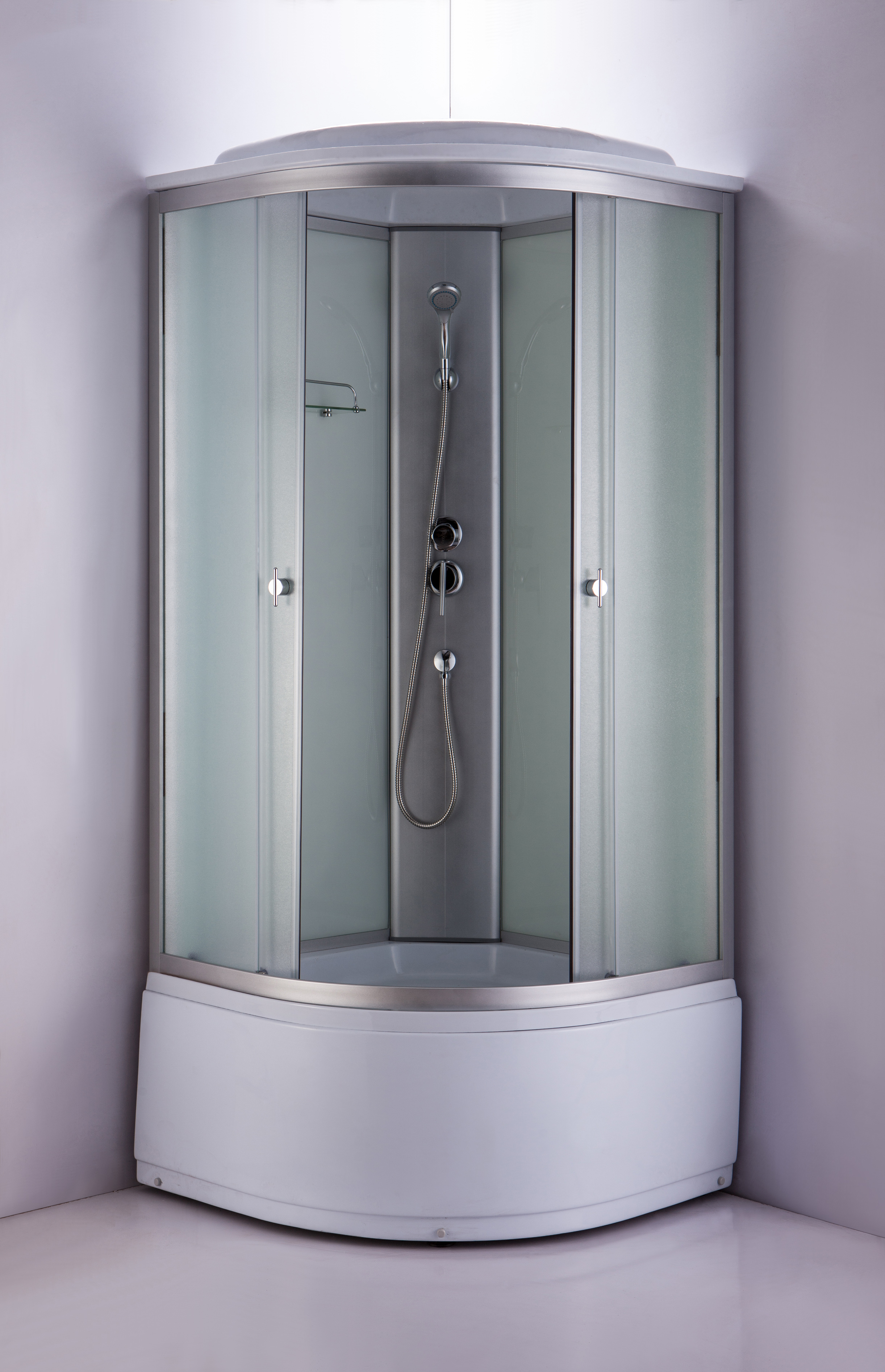 100х100х225 Акриловый поддон на каркасе глубина 28см, Сифон с гофрой, Тропический душ, Крыша, Ручной душ 4 режима+крепление, Смеситель 2х режимный, сиденье отлито в поддоне, полочка.