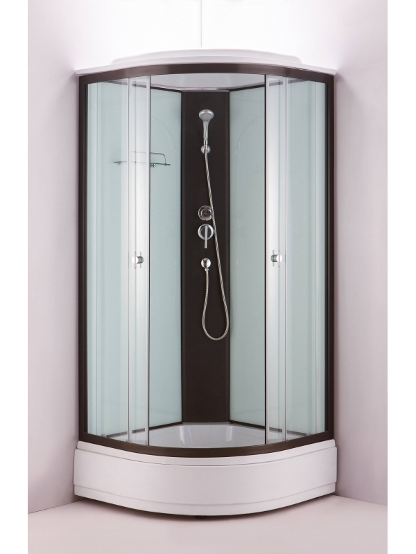 100х100х220 Акриловый поддон на каркасе,сифон с гофрой, тропический душ, крыша, ручной душ+крепление, смеситель 2х режимный, полочка.