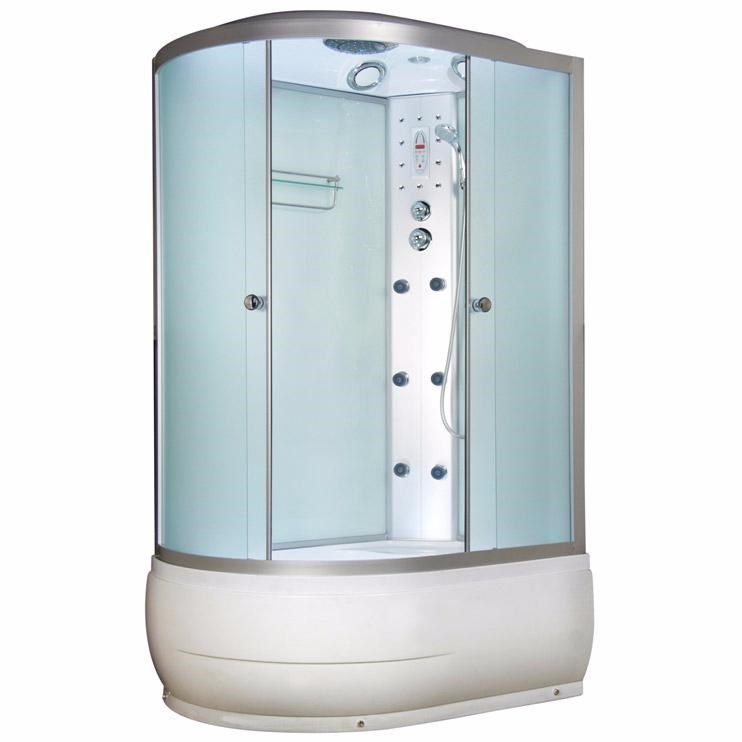 ушевая кабина, высокий поддон,Сенсорный пульт Touch-Screen, РАДИО,вентилятор, подсветка, полка, ,верхний душ, ручной душ, спинной массаж 6 форсунок, передние стекла матовые, задние стекла белые.