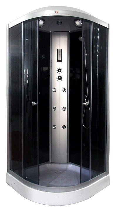 Душевая кабина, низкий поддон, Сенсорный пульт Touch-Screen, РАДИО, вентилятор,LED подсветка, полка, верхний душ, ручной душ, спинной массаж, 6 форсунок, передние стекла тонированные, задние стекла черные.
