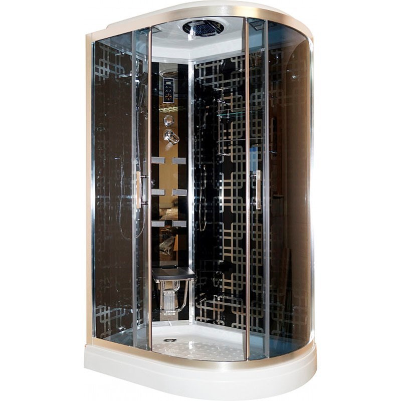 Душевая кабина низкий поддон ,сенсорный пульт Touch-Screen Blaсk с Радио, LED подсветка , вентилятор, налив воды, двойная полка, современная душевая лейка, адаптивные износостойкие форсунки-6шт., тонированные передние стекла, задние стекла черные с зеркальным рисунком,высокопрочное раскладное сиденье, г/м ног, дозатор